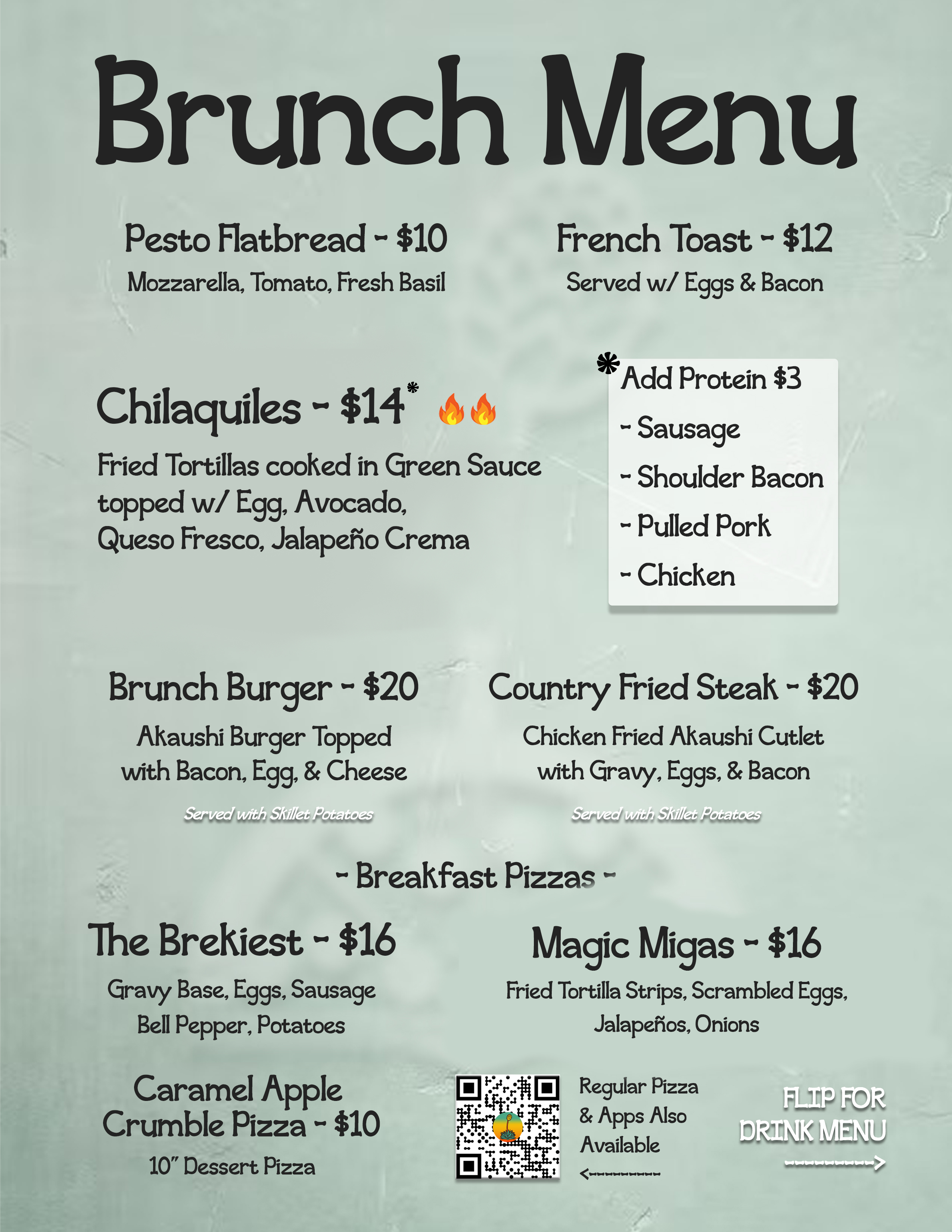 We’ve been having such a great time at Brunch lately, we’re making it a Monthly Event! Join us the last Sunday of Each Month* for rotating Breakfast/Brunch Items, and Drink Specials.